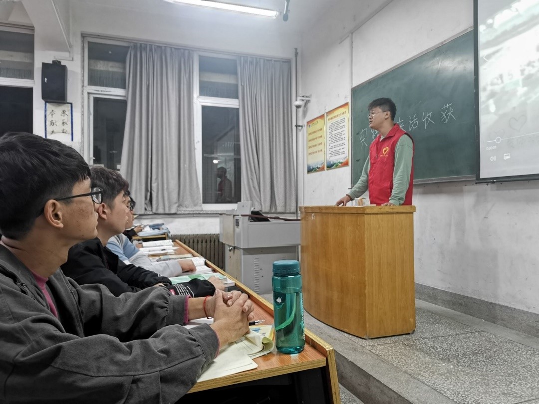 晚上七点,由各班军训联络员首先开展了“实践归来话收获”主题团日活动,活动开始,三下乡优秀团队代表上台进行演讲,介绍了社会实践的过程,通过播放ppt和视频来展示2020年社会实践的成果,接着邀请各班团员发表并讲述了实践活动过程中的感受,交流分享经验,给大一新生更直观的感受,呼吁每一位同学积极投身于社会实践活动中。