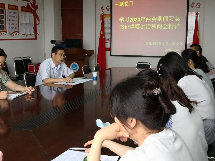 会上,胡继勇同志先是带领我们进行了习近平总书记两会重要讲话精神和政府工作报告的学习,随后大家结合自己的本职工作及学习心得展开讨论。党丽赟同志表示工作报告的提出,对推动教育公平发展和质量提升等举措,让教育者备受鼓舞、干劲倍增,自己也定不辜负党的信任,努力工作,教书育人;任禾林同志表示要积极响应习近平总书记号召,努力在危机中育新机,于变局中开新局。作为一名专职辅导员,要继续建立好员工健康监测动态机制,做好疫情防控相关的宣传引导工作;杨风岭同志也结合自己的经历和学习体会给我们阐述了什么是人民,什么是人民利益至上以及怎样全心全意为人民服务的内涵,任何时候我们都要把集体利益放在心上;会中他还提到先进大型仪器的使用,大型精密仪器是出高层次成果和培养人才的一个重要支撑;谈到高校团队建设的重要性,我们要以团队建设为龙头,团队建设对老师来说是支撑成长的重要促进手段,也是实现教师知识结构和提高教书育人水平的重要途径,团队建设是一个长期积淀的结果;此外他对学院教研室的功能也进行了一个更明确的定位,教研室应该是一个教学改革和教学研究的组织机构,它要成为教书育人的一个平台;最后他还强调了团队建设的重要性,团队中的每个成员都要不断进行思想创新,才能不断取得新成果。
